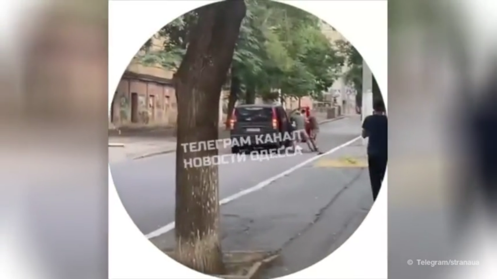 Odessa: two TRC officers overpower young man and shove him into van amid forced mobilization (July 21)