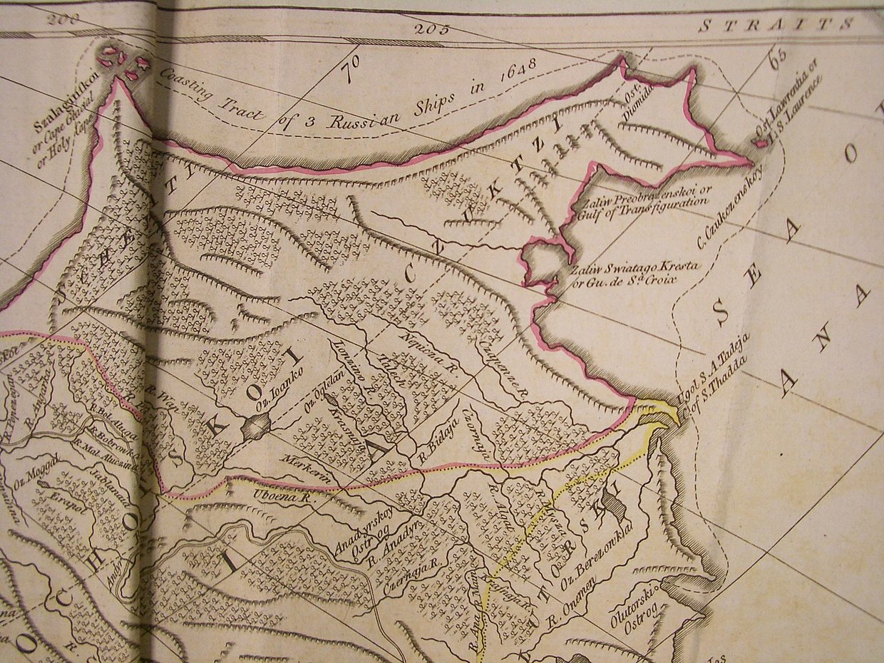 Route of Semyon Dezhnev’s expedition, from Thomas Kitchin’s General Atlas of the Whole Universe, 1773.