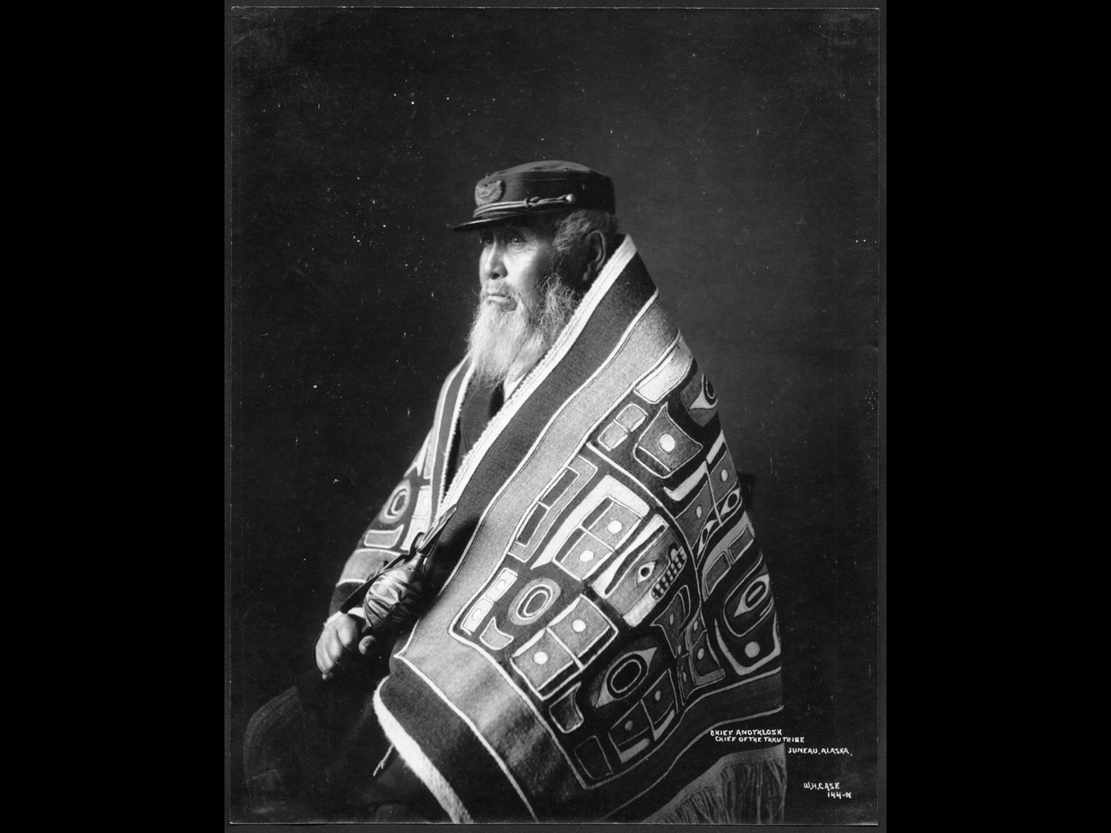 Chief of the Tlingit Tribe, wearing a Chilkat blanket, Juneau, Alaska
