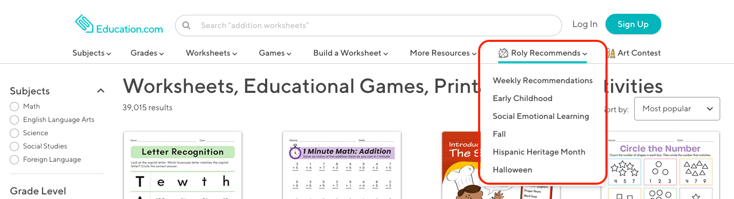 Your Weekly Boost is the easiest way to get started—no planning or searching required. Each week, you’ll receive a fresh set of resources tailored to your child’s grade. Simply sign in and look for “Weekly Recommendations” under “Roly Recommends” in the top navigation bar. You’ll also receive your Weekly Boost by email every Sunday, so you can start the week with the right activities and worksheets for your learner.