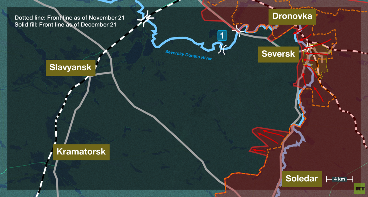 Such a maneuver is quite possible. For example, it was the crossing of the Seversky Donets River near the railway bridge in the area of Dronovka that allowed the Russians to cut off one of the routes to Seversk, leading to success in battles for the city.