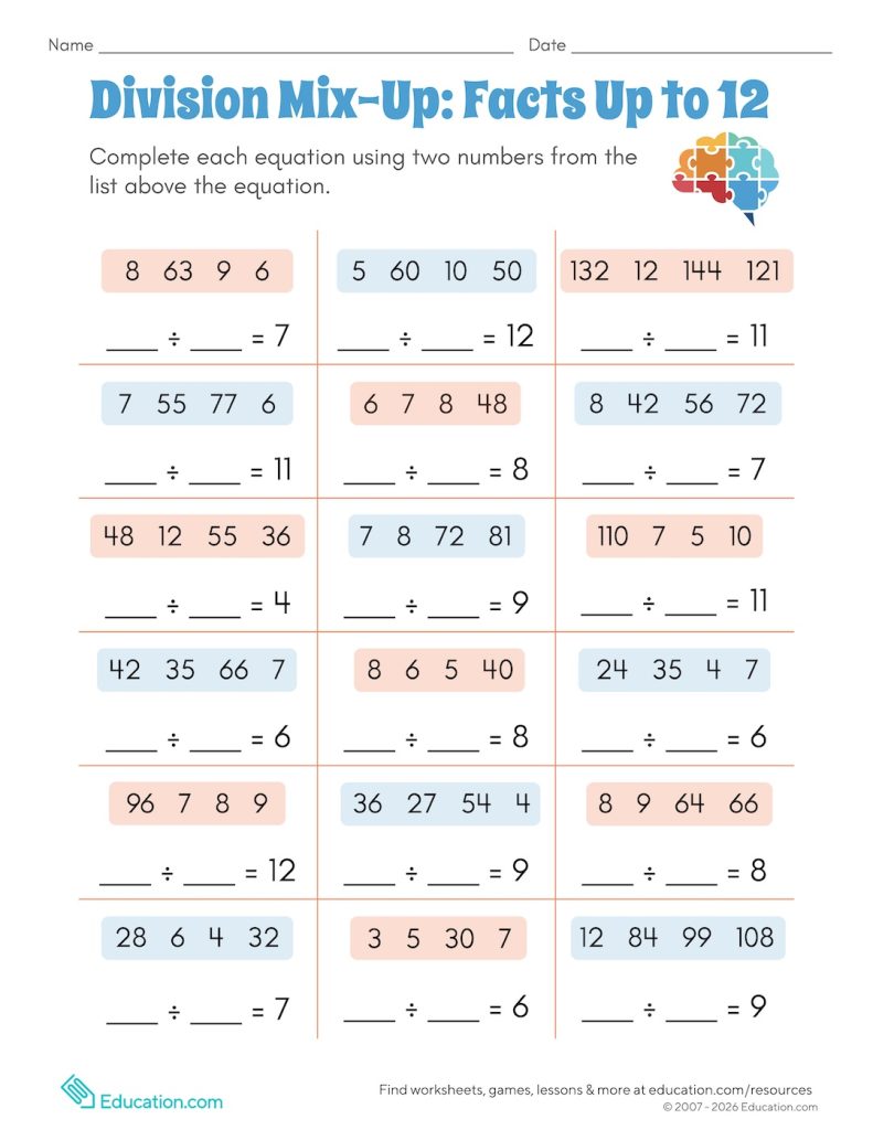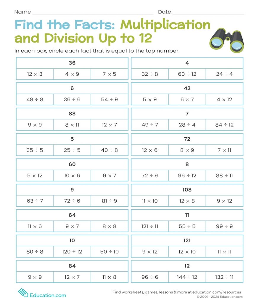 Third and fourth graders sharpen multiplication and division facts up to 12 with this trio of interactive worksheets. From solving mixed-up division equations to spotting matching expressions and navigating fact-filled puzzles, students practice recalling facts quickly and accurately. These activities boost fact fluency, reinforce the connection between multiplication and division, and prepare learners for more advanced math.