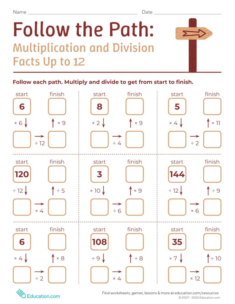 - Follow the Path: Multiplication and Division Facts Up to 12